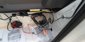 Um das dritte Kabel (ca. 3m) zum Motorkugelhahn zu verlegen habe ich links die Verkleidung und die Verkleidung am Einstieg abgeschraubt. Das Kabel habe ich dann bis zur hinteren Schraube der Verkleidung geführt, das Plastikteil in dem die Schraube sitzt entfernt und das Loch an einer Seite etwas vergrößert (Bohrloch zur Rostvorsorge mit Farbe schützen) und das Kabel durch einen Kabelkanal bis zum Motorkugelhahn führen, hier das Kabel anschließen. Das zweite Kabel am Motorkugelhahn an Masse an der Karosserie anschließen. Alle Kabel mit KFZ Wellschlauch ummanteln - Fertig.