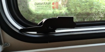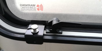 hast Du auch die Schienen für die schmalen Fenster im Schlafbereich bestellt? Hier ist ja die Haltestange, zum offenhalten des Fensters, im Weg.