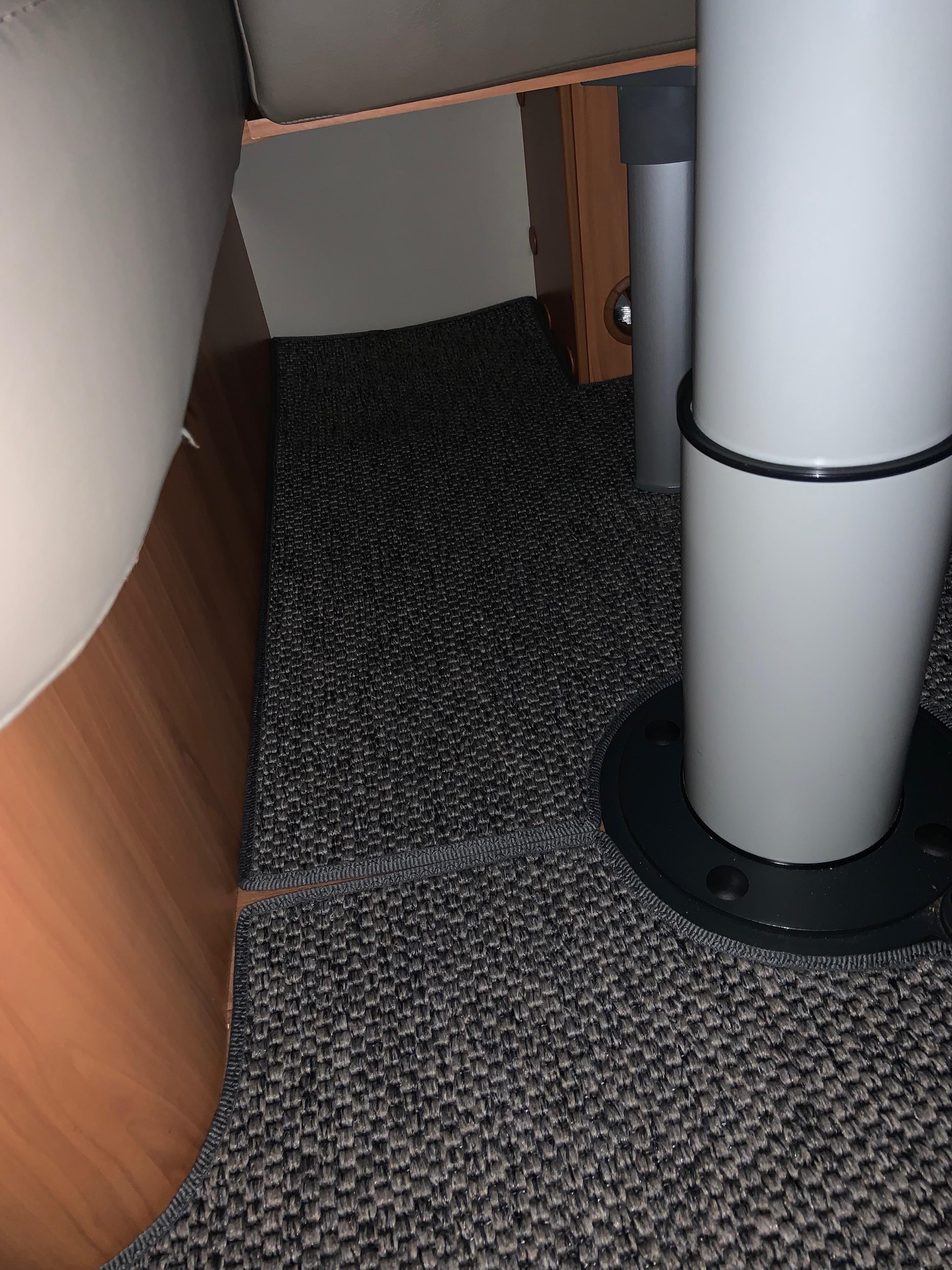 Also Termin gemacht. 10:00 Uhr war ich da, die netten Jungs haben Maß genommen, wir haben das Material ausgesucht und 15:00 konnten wir das Mobil, mit angepassten Teppich abholen.