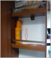 Deshalb habe ich nach Klemmleisten gesucht, das die höheren Flaschen nicht umfallen.