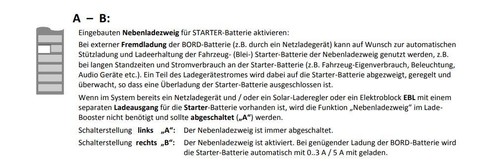 angeschlossen wurde. Dabei wird der Ausgang des Boosters direkt an die Aufbaubatterie angeschlossen und