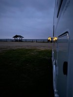 Wir hatten geplant die erste Nacht frei zu stehen und dann die zweite Nacht irgendwo auf einem Platz mit Ver-und Entsorgung zu stehen. Aus diesem Grunde habe ich rund vierzig Liter Wasser vor der Fahrt aufgefüllt, aber natürlich nichts in die Leitungen oder gar den Boiler.