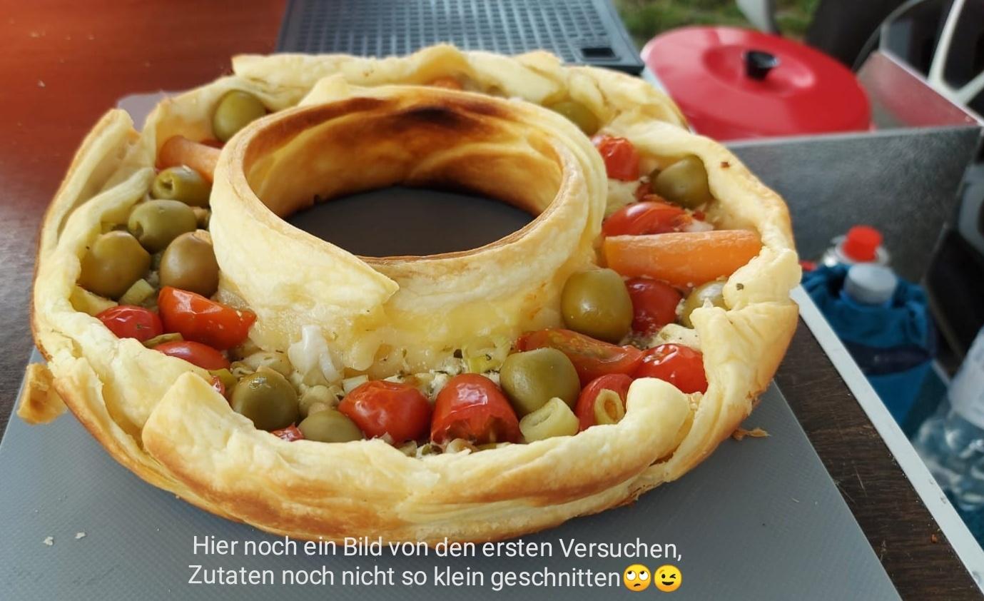Die Silikonform in den Omniaofen legen und mit Blätterteig (Fertigware) auskleiden.