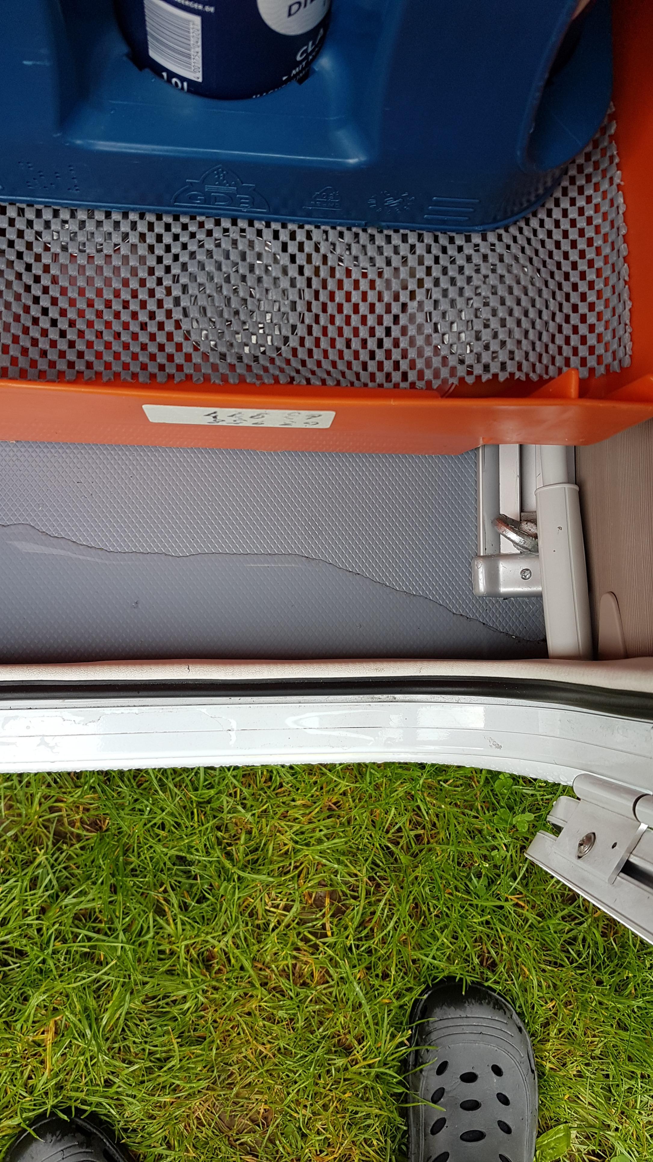 Ich habe die Tür eng an die Dichtung verschraubt, habe Zewa Papier verklebt um zu gucken wo es nass war,alles negativ. Ich glaube bald das sich Wasser unten über die Kante hochdrückt. Oder es kommt rein durch eine leichte Verwindung des Aufbaus je nach dem wie das Wohnmobil eingeparkt ist. Darum habe ich schon mal dran gedacht eine Zweite Dichtung einzubauen.
