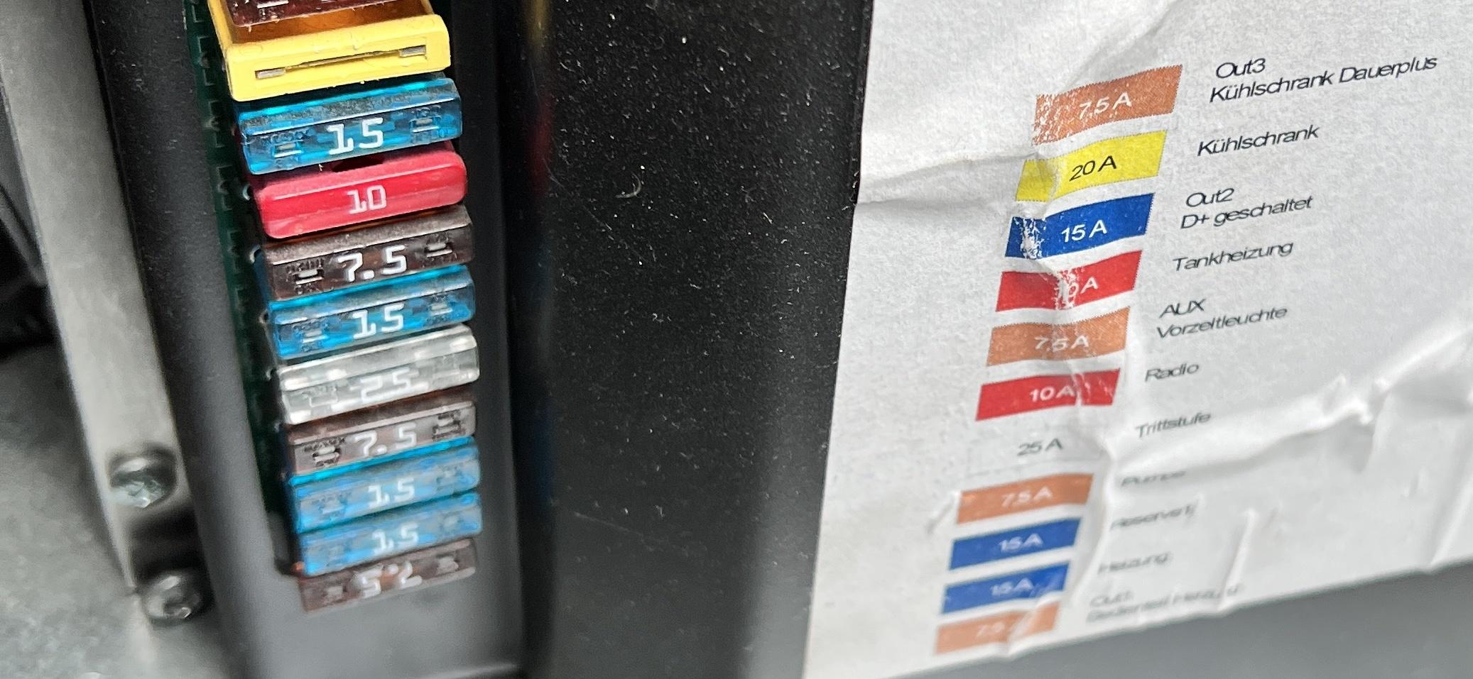 Meine Frage: Warum gibt es den abgesicherten Kühlschrank Dauerplus und nur „den“ Kühlschrank bei den Sicherungen? Die Frage stelle ich mir schon länger, denn das Gateway blinkt fröhlich vor sich hin, obwohl der Kühlschrank ausgeschaltet ist!!!
