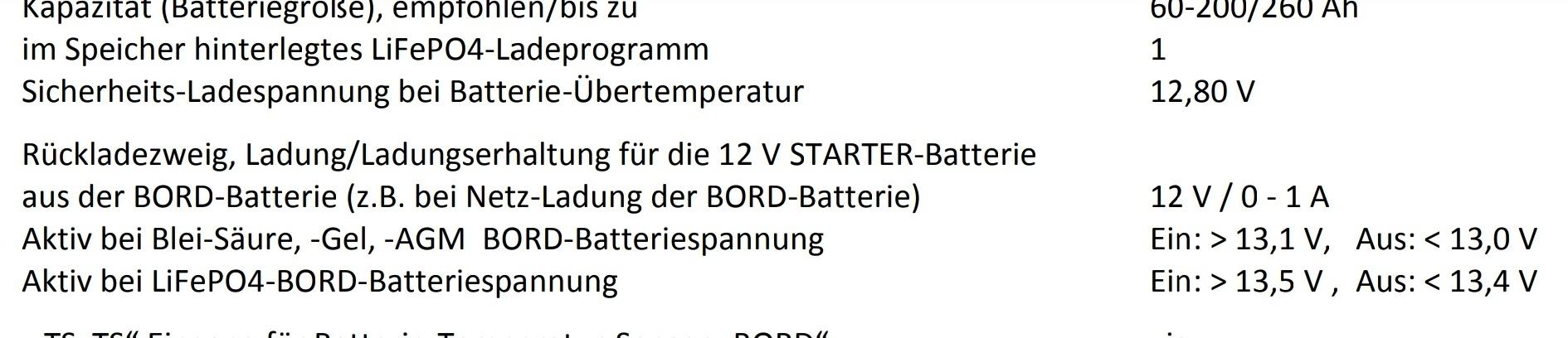 ich hab einen Wechselrichter von ECTIVE verbaut, aus der CSI (Charger Sinus Inverter) Serie: lädt mit 20 A die Aufbaubatterie wenn an Landstrom, hilft auch die LiFePo voll zu halten