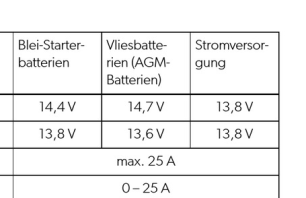 Die Spannungswerte sind dann 14,4 und 13,8V. Das sind die selben Werte wie bei deinem Booster