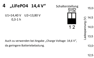 Der Booster muss auch per Dip-Schalter auf LifePo4 umgestellt werden.