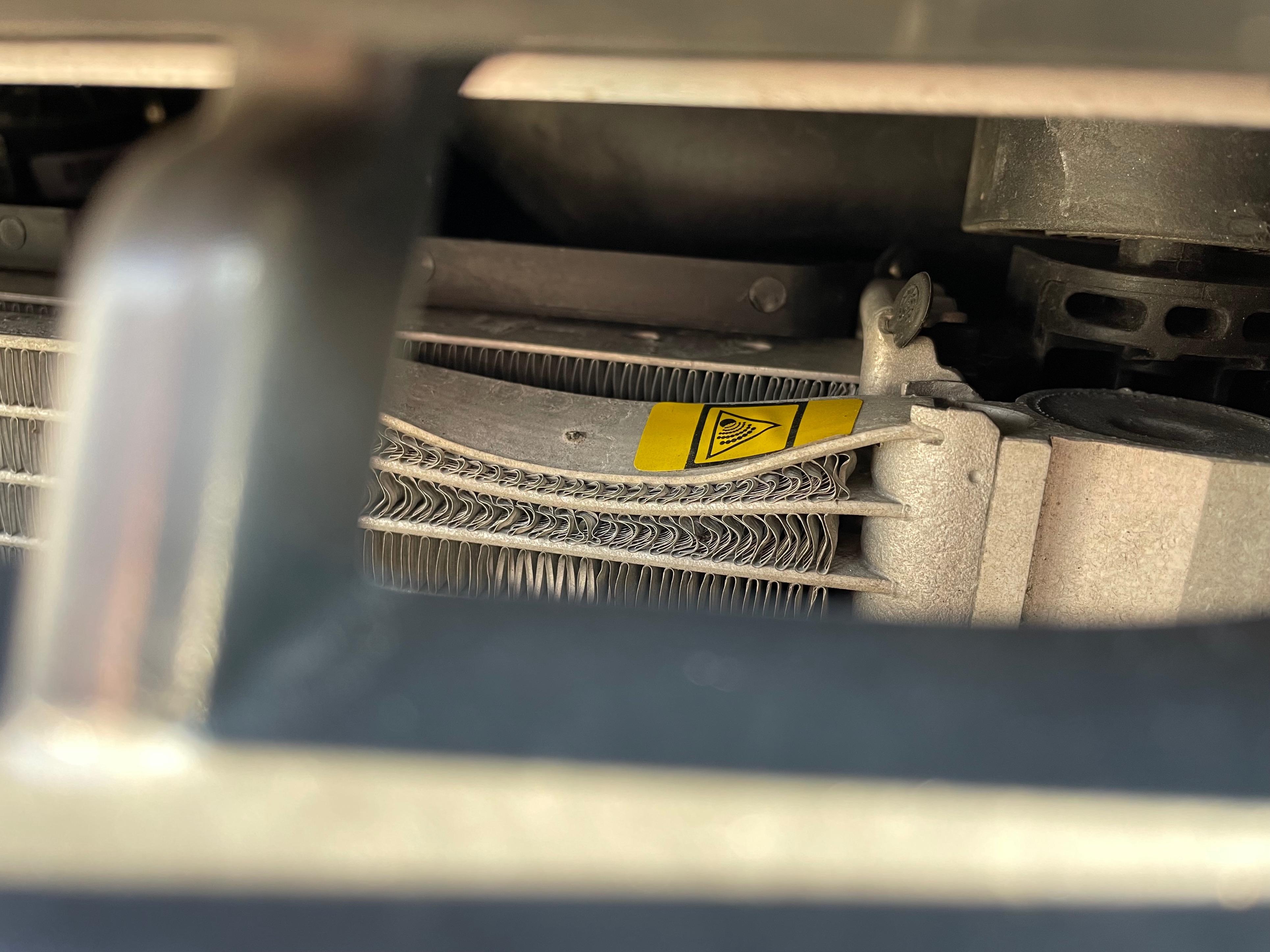 Hallo Gemeinde,ich habe bei der Fahrzeugpflege hinter dem Kühlergrill direkt am Kühler eine Delle entdeckt. Merkwürdigerweise sieht die aus wie gebogen und hat einen Aufkleber darauf.Es scheint also im ersten Moment kein Steinschlag zu sein. Hat jemand das auch so?