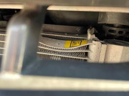 Das ist offensichtlich, wie schon geschrieben, der Kondensator der Klimaanlage. Die Delle oben ist bei mir nicht.?