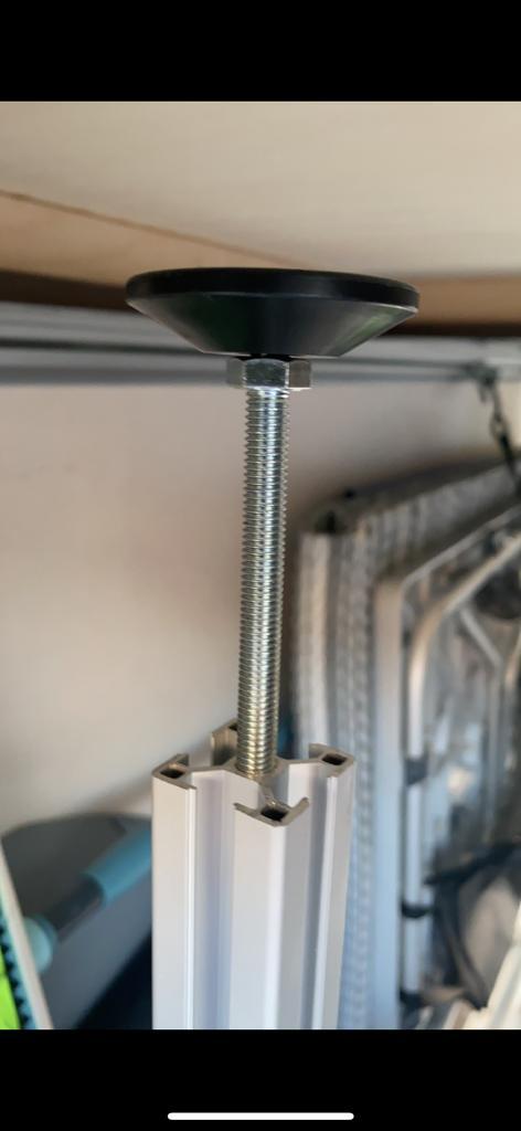 Ich denke da an ein höhenverstellbares Regal, was an Decke und Boden durch verstellbare Stützen gehalten wird.