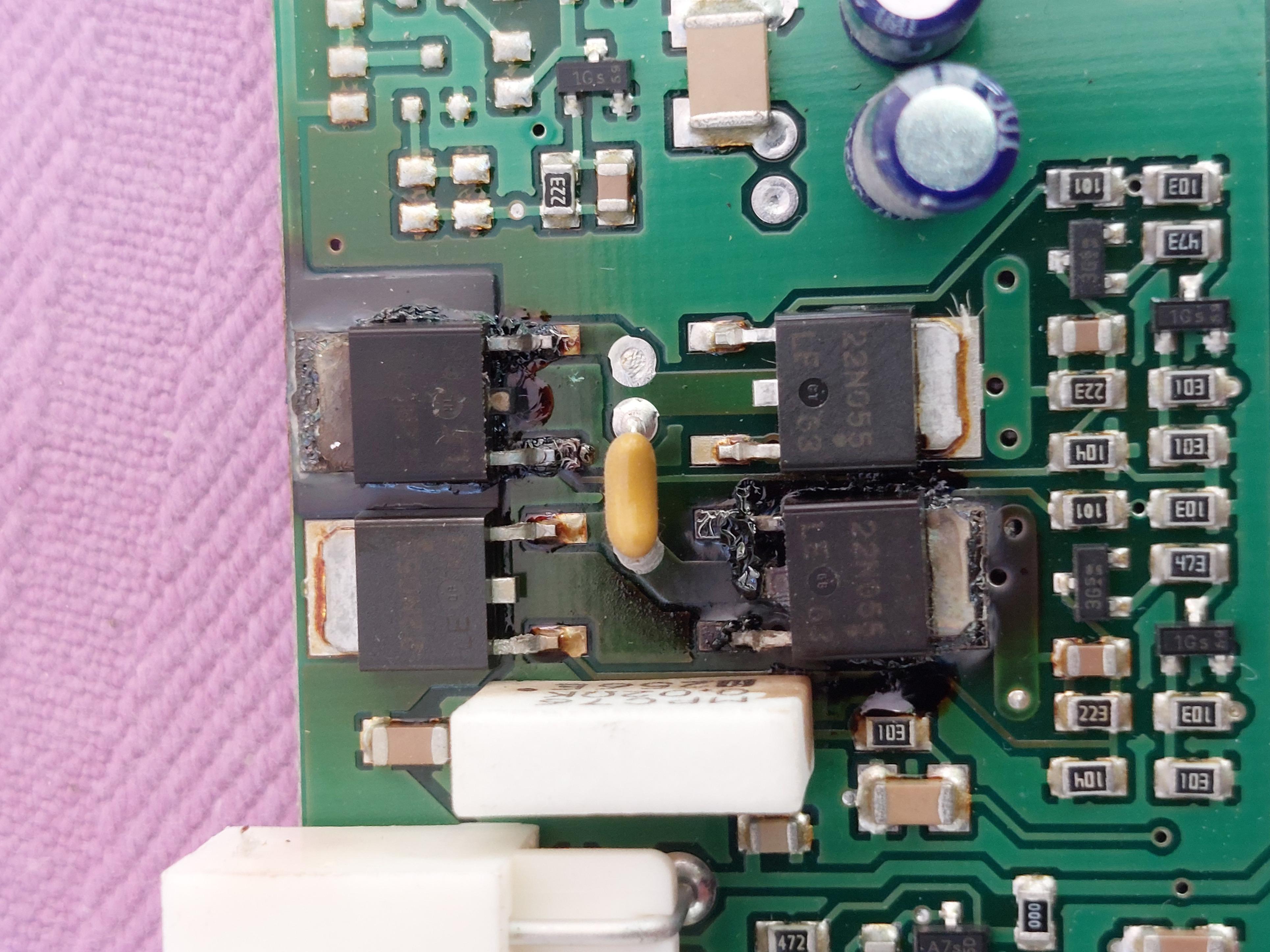 Auf der Platine vom Motortreiber sind zwei Transitoren durchgeschmort.(Bild)