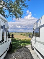 Na das ist ja mal wirklich schwer. Also kleine Felder, Berge im Hintergrund, ich tippe mal auf irgendwo in Norditalien