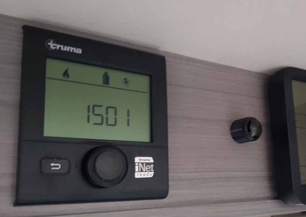 1)der Temperatursensor der Truma ist der runde Pickel beben dem Truma-Display.