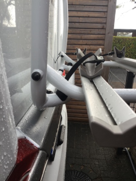 So, es ist vollbracht, der neue Träger montiert. Anbei noch ein Foto vom alten Fahrradträger sowie vom neuen, einem Sawiko Velo III. Somit ist der alte Träger demontiert und kann käuflich erworben werden.