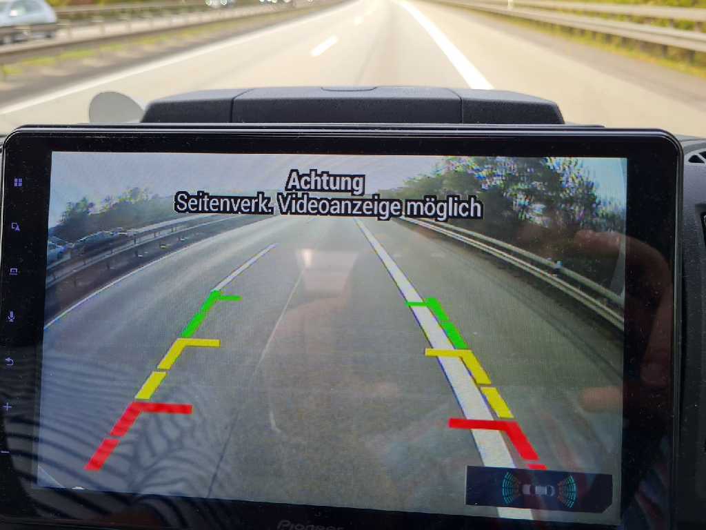 Die Rückfahrkamera läßt sich während der Fahrt auch prima als Rückspiegel nutzen, nervt jedoch mit dem Warnhinweis auf eine seitenverkehrte Darstellung.