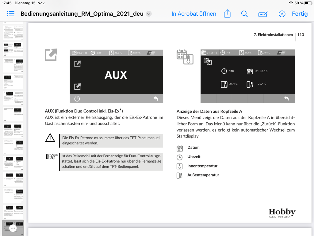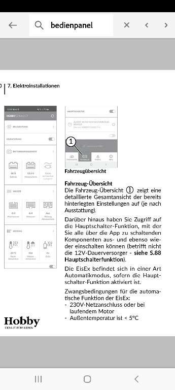 das Bedienteil haben wir nicht geordert. Eis-Ex sehr wohl. Soll ja über die App eingeschaltet werden können. Nur dort wird nichts angezeigt? Für die Gastankflaschen habe ich eine Fernanzeige zusätzlich eingebaut und die Umschaltung der Flaschen passiert ja automatisch.