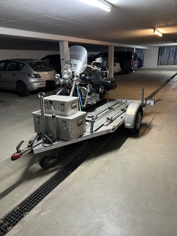 verkaufe unseren Motorrad Anhänger. Der Anhänger hat gegenüber dem Originalzustand ein paar Erweiterungen erhalten.