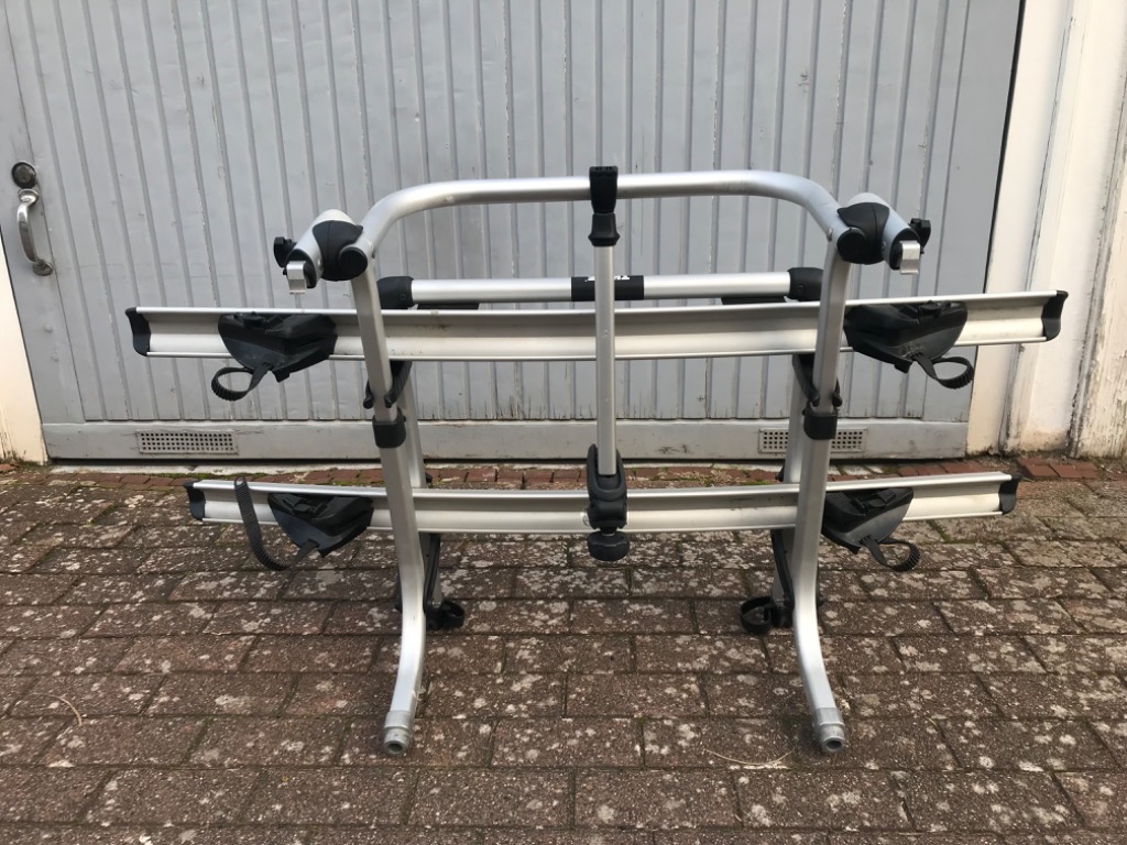 Verkaufe meinen Thule Fahrradträger. Er war 1 Jahr montiert, aber nur ca 5 Mal benutzt. Der kurze Halter für das innere Fahrrad ist nicht dabei, Genauso wie die untere Halterung, die musste wegen der Dichtheitsprüfung am WoMo bleiben. Die oberen Befestigungen sind unbenutzt dabei, siehe Fotos. Preis 100 VB