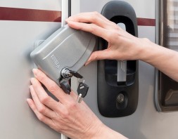 • Wir haben das Fiamma Safe Door auch an der Aufbautür angebracht und ich bin sehr zufrieden mit dem Schloss. Rundschlüssel hat das Schloss allerdings nicht oder nicht mehr, es besteht ja aus eloxiertem Aluminium ohne Kunststoffteile, ist somit absolut Wetterfest. Die Türdichtung im Bereich des Anschraubwinkels sollte man aber beim Schließen der Tür immer im Auge behalten, viel Spiel ist da nicht.