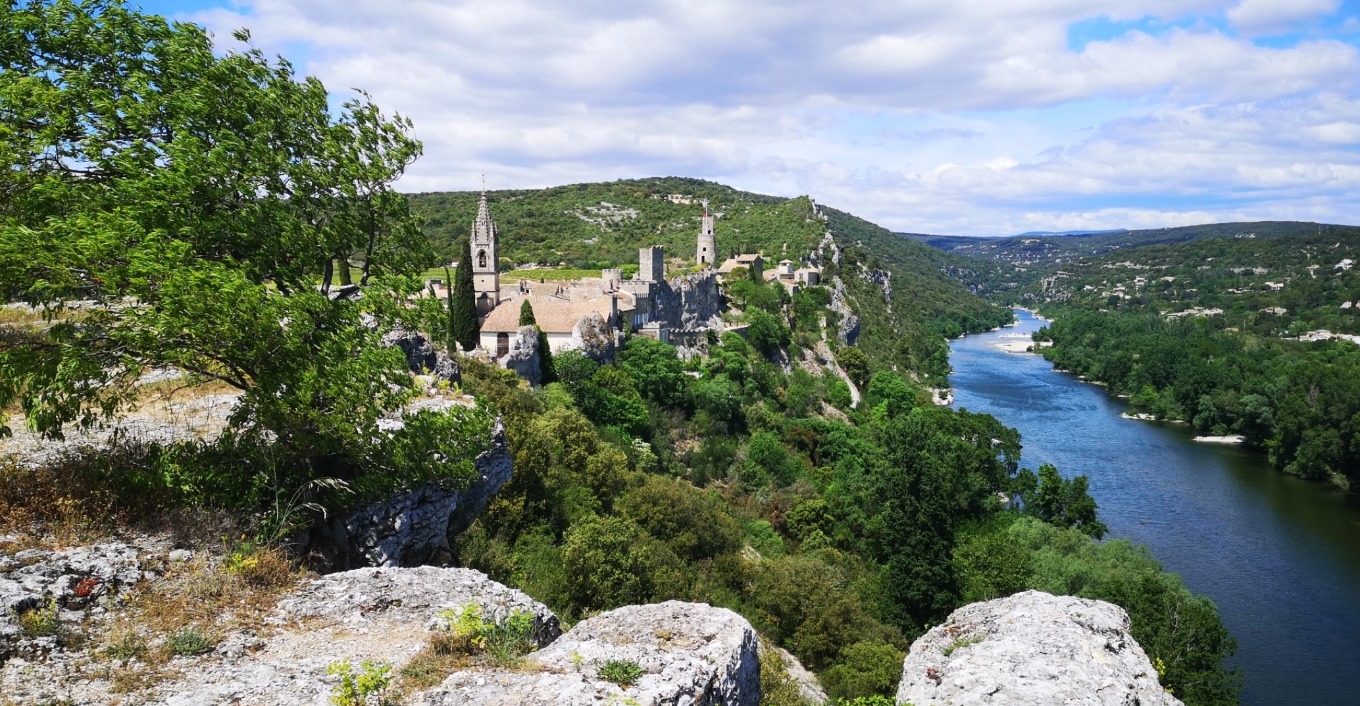 Tolle Ausblicke auf die Ardeche, unten ziehen immer wieder Paddler vorbei und man/frau kann schnell ins Träumen kommen. Gern auch ein paar kulinarische Genüsse auf dem Dorfplatz genießen, Bierre Blanche und ein Baguette mit glasierten Zwiebeln. Lecker, sag ich euch!