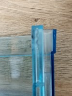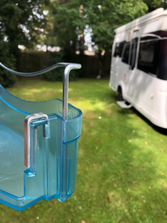 Wieder zusammenkleben hatte keinen Erfolg. Wir haben dort immer Getränke, 3x 1 L Flaschen, zu stehen und dafür wollten wir es auch weiter nutzen. Erst eine zusätzliche Verstärkung der Aufnahmeführung mit einem Metallwinkel (U Profil), von außen aufgeklebt, beendete das leidige Thema. Seit ca. vier Jahren, keine Probleme mehr. Die Aktion, hat uns bestimmt schon viel Geld gespart.