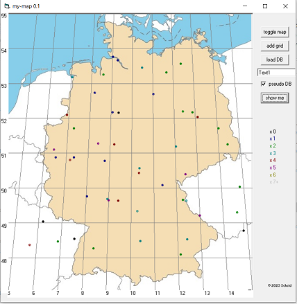 Deshalb hab ich als kleines Wochenendprojekt eine Karte zum Visualisieren angegangen. Es wird eine blanko Deutschlandkarte angezeigt, die Daten werden aus der Excel-Tabelle gelesen und in der Karte eingetragen.