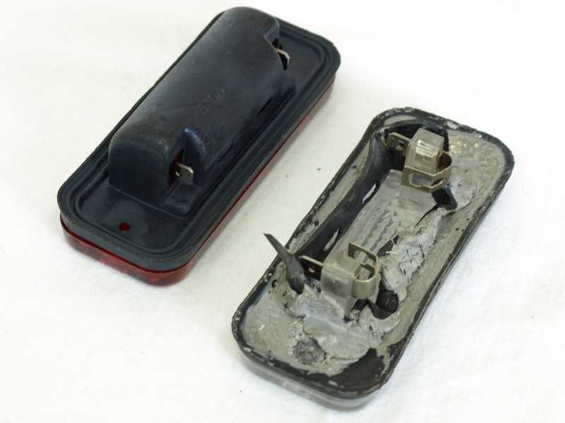 Nachdem mir vor kurzem aufgefallen war das eine Positionsleute Vorne nicht leuchtete wollte ich die Glühlampe wechseln , nach abbau der Abdeckung erschrack ich sehr wie es da aussah , die komplette hintere Gummiabdeckeung war abgeschnitten und die leuchte war dann mit Dekalin oder ähnlich einsetzt , dann alle vier Leuchten kontroliert , alle waren beschnitten , so wie sich das Dichtmittel anfühlte war es wohl vom Auslieferungzustand 1998 .