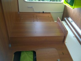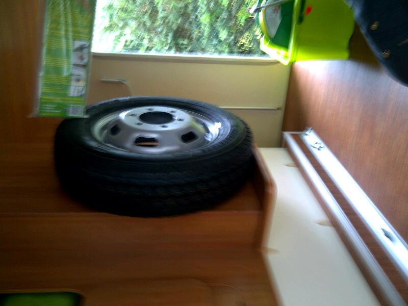da ich zwangsweise mein Reserverad mit Halter abmontieren musste (komme sonst nicht in meine Einfahrt hinein da die Einfahrt zu steil ist) muss ich mir Gedanken machen wo und wie ich mein Reserverad in der Garage unterbringen kann. Ein Bekannter von mir hat das Reserverad in der Mitte der Garage zum Wohnraum hin am Brett befestigt. Das Brett scheint die Rückwand zur Treppe ( zu den zwei Einzelbetten) zu sein. Allerdings weiß ich nicht, ob hinter dem Brett nicht eine Verstärkung montiert wurde. Das Reserverad ist auf jeden Fall mit 6 Bolzen befestigt. Wahrscheinlich komme ich nicht drum herum, das Brett abzuschrauben und mal zu schauen, wie es darunter aussieht und wieviel Platz da ist um eventuell eine Stahlplatte zur Lastverteilung darunter zu montieren.