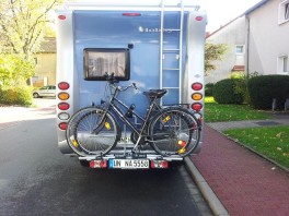 Hast du eigentlich schon mal überprüft ob du den Träger vom Gesetzgeber her überhaupt an Deinen Mobil betreiben darfst , die Leuchten des Trägers dürfen das Maß von 40cm von aussenkante Leuchte /Träger bis aussenkante Mobil nicht überschreiten , siehe auch hier ab Seite 15. klick hier