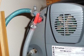 bei der diesjährigen Inbetriebnahme gab es wie gewöhnlich ein kleines Wasserproblem: diesmal ist es ein unscheinbar am WW-Anschluss der Truma Combi 6 sitzendes rotes Ventil durch das das Wasser sofort wieder abläuft.