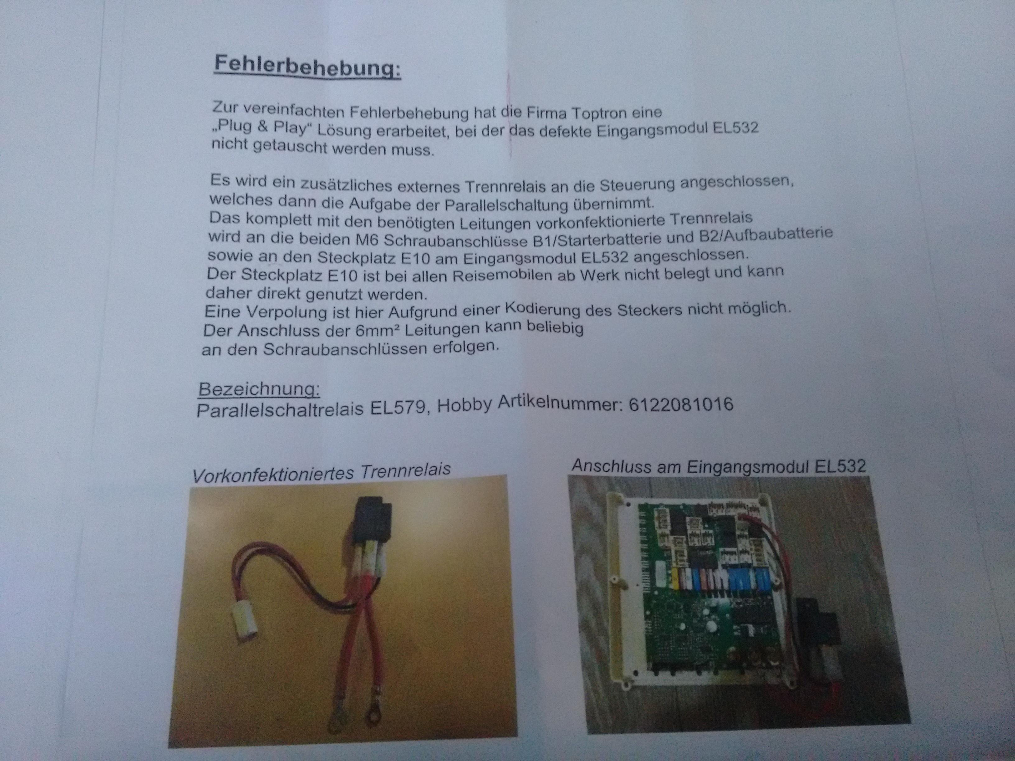 Da wurde uns das Ersatzteil von unserem Händler zugeschickt...sonst hätten wir zurück fahren müssen.