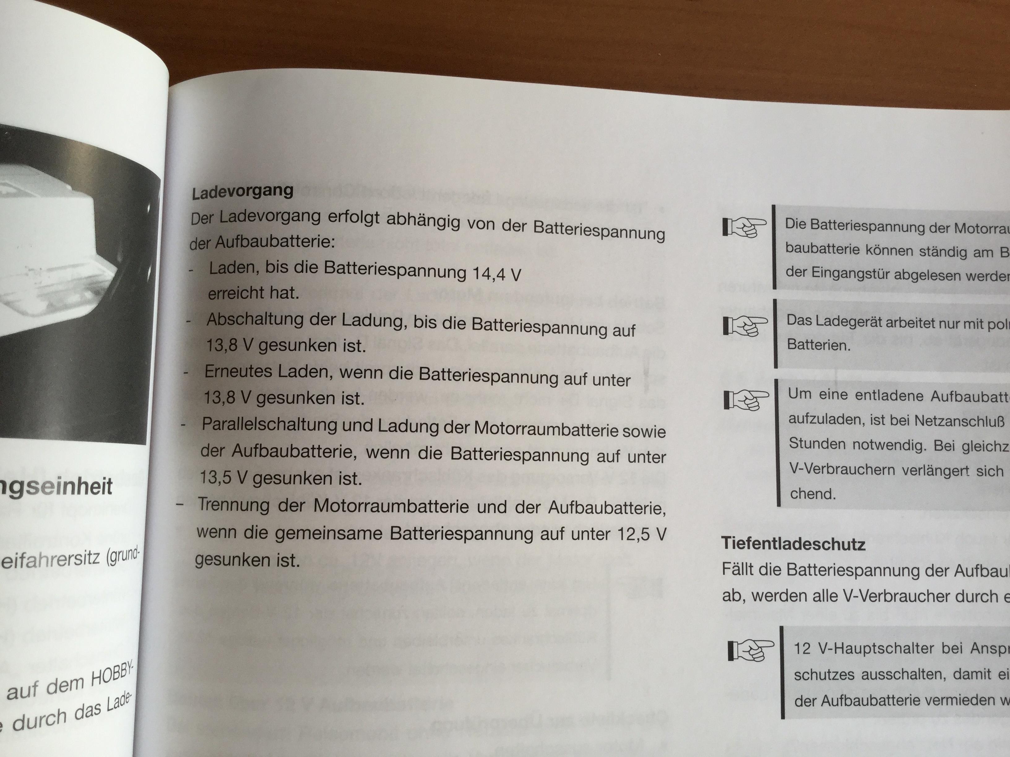 das Ladegerät für die Aufbaubatterien lädt die Motorbatterie nicht mit.
