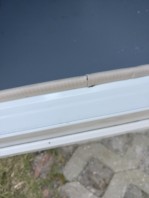 Der Rahmen ist normalerweise ebenfalls mit diesem Dichtmittle eingedichtet, das sollte eigentlich gut halten. Aber bei mir war es wohl nicht so, so dass nach drei Jahren sich Wasser zwischen Aufbauwand und Rahmen den Weg nach innen gesucht hat. Nach dem wiederholten Abdichten habe ich nun Ruhe.