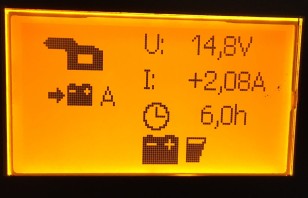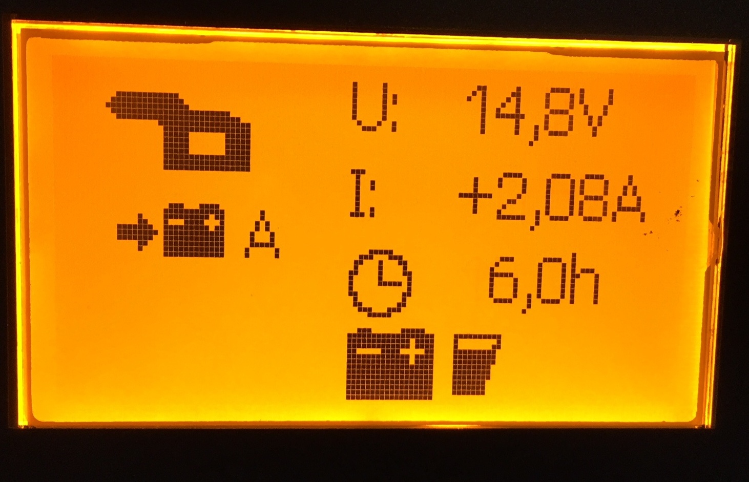 In unserem ist das kleinere verbaut mit gelbem Hintergrund. Da gibt es gar keine prozentuelle Batterieanzeige. Nur so ein abgestufter Balken ist sichtbar, welcher den Füllstand der Batterie anzeigt. Wenn dieser durch trennen des Batteriesensors oder verändern eines Parameters verschwunden ist, muß ich die Batterien über Landstrom laden und anschließend Landstrom abklemmen, alle Verbraucher ausschalten und ca. 4 Stunden warten, dann ist der Füllstandsbalken wieder da.