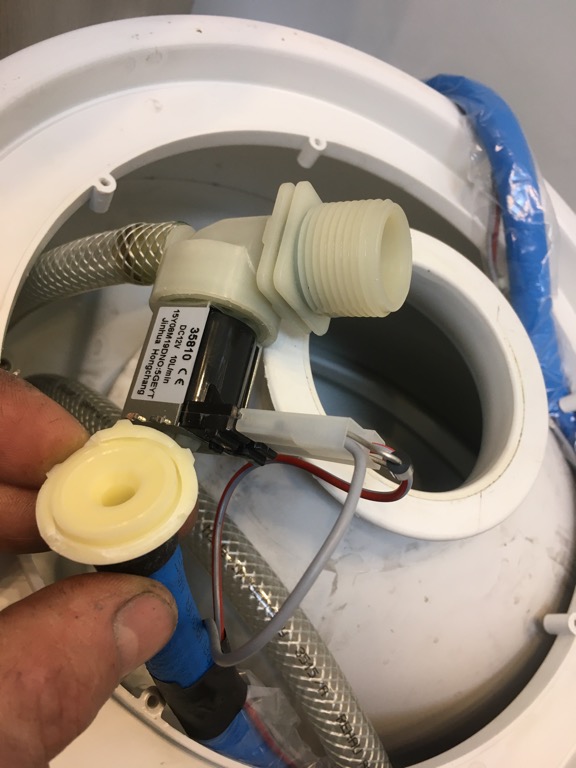 Das Magnetventil mit der abgerissenen Überwurfmutter ist sozusagen in der Kloschhüssel verbaut. Von unten sieht man wie die Wasserzuführung reingeht. zum Zerlegen gibt es ein recht gutes Video auf YouTube