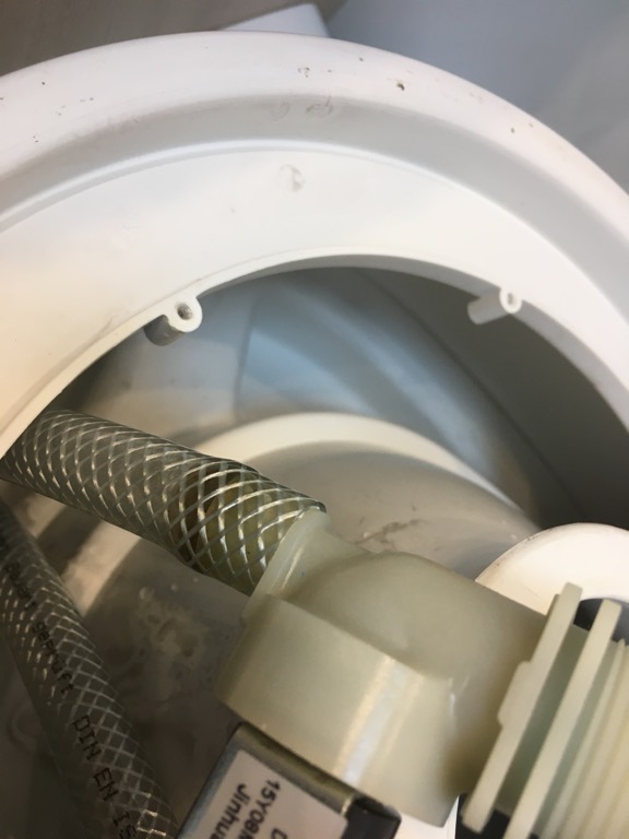 Abschließendes Fazit, die Spülung geht besser denn jeh, da mit der Aktion der Schlauch ordentlich und ohne Knicke jetzt in der Schüssel liegt.