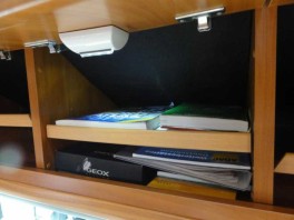 Die Staukästen über dem Cockpit sind praktisch, da in Nähe zu den Fahrersitzen (Bordatlas, Laptop, Sonnencreme etc.)
