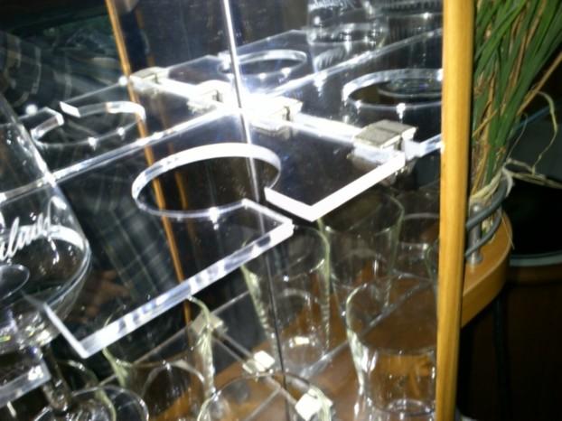 wir wollten in der Gläservitrine gerne Weingläser unterbringen, deren Fuss einen grösseren Durchmesser haben als die Löcher in den Plexiglas-Fachböden.
