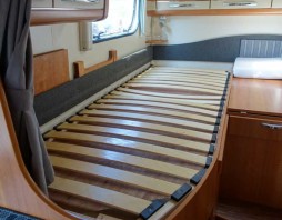 Mit der Holzauflage wird mein Gewicht (>90kg) besser verteilt, d.h. die Punktlasten werden verringert. Mit dem Gumminetz unter der Auflage werden das Verrutschen und das lästige Knarzen verhindert.