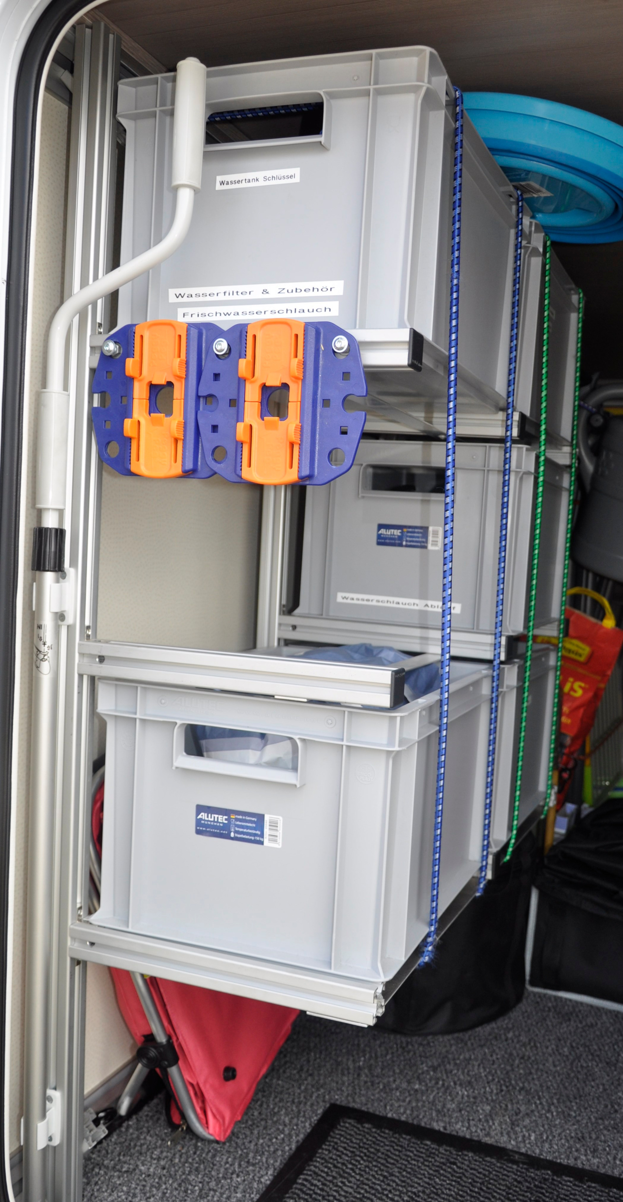In Der Garage habe ich mir aus Boschprofielen ein Regal gebaut damit ich nicht immer alles rauskramen muß bei der täglichen Suche - Die Boxen sind aus dem Baumarkt.
