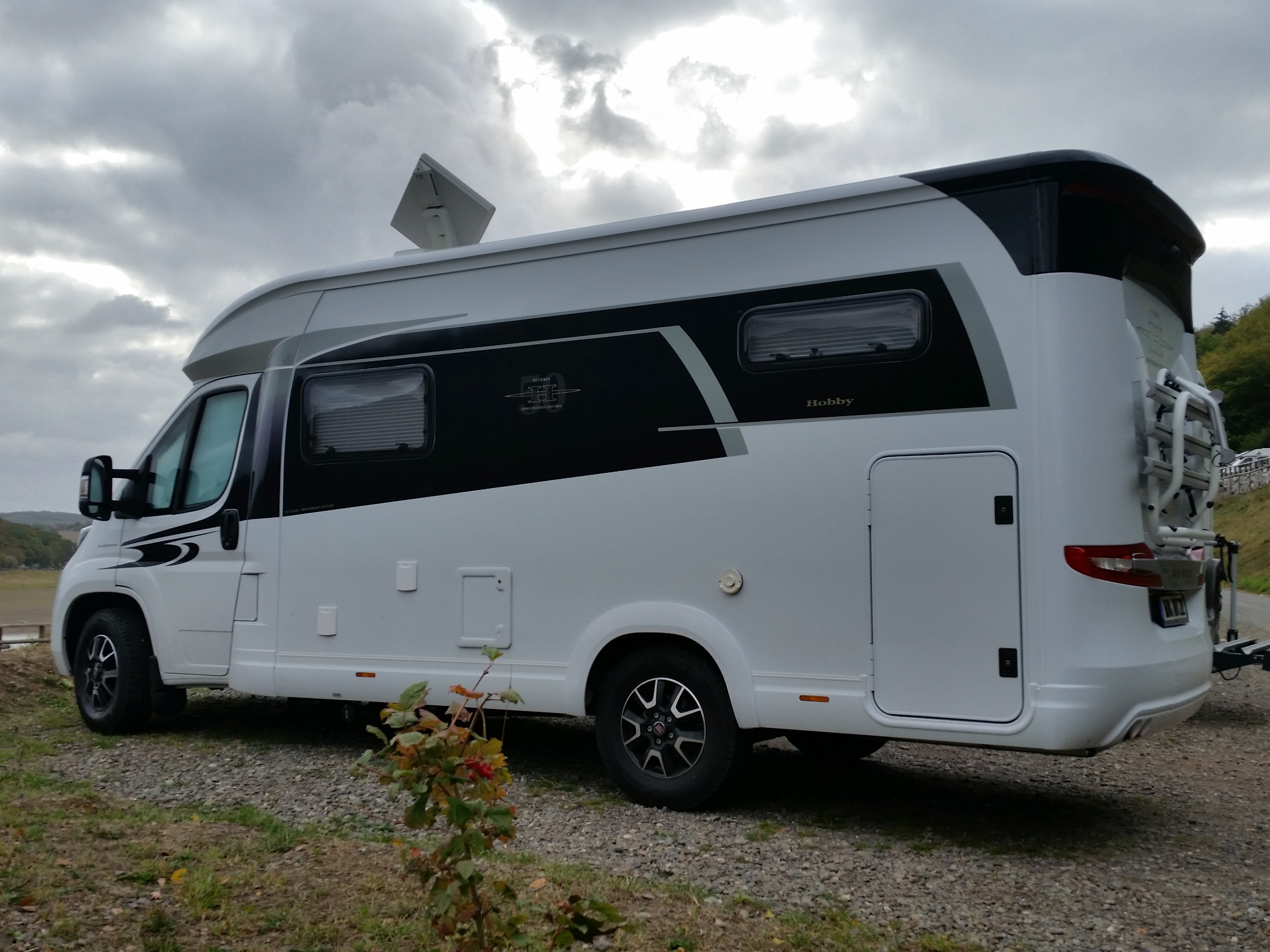 wir 2 Erw. und 1 Kind sind ganz frische Eigentümer eines Hobby und auch noch nicht sehr Erfahren in der Womo Welt. Die letzten 2, 5 Jahre waren wir mit den verschiedensten Fahrzeugen unterwegs um dann in einem 2, 16m breiten und 6, 80m langen Version mit Längsbetten, Bike Garage und einfachen Sitzgruppenumbau zu enden. Die Ausstattung hatte uns dann vollends überzeugt.