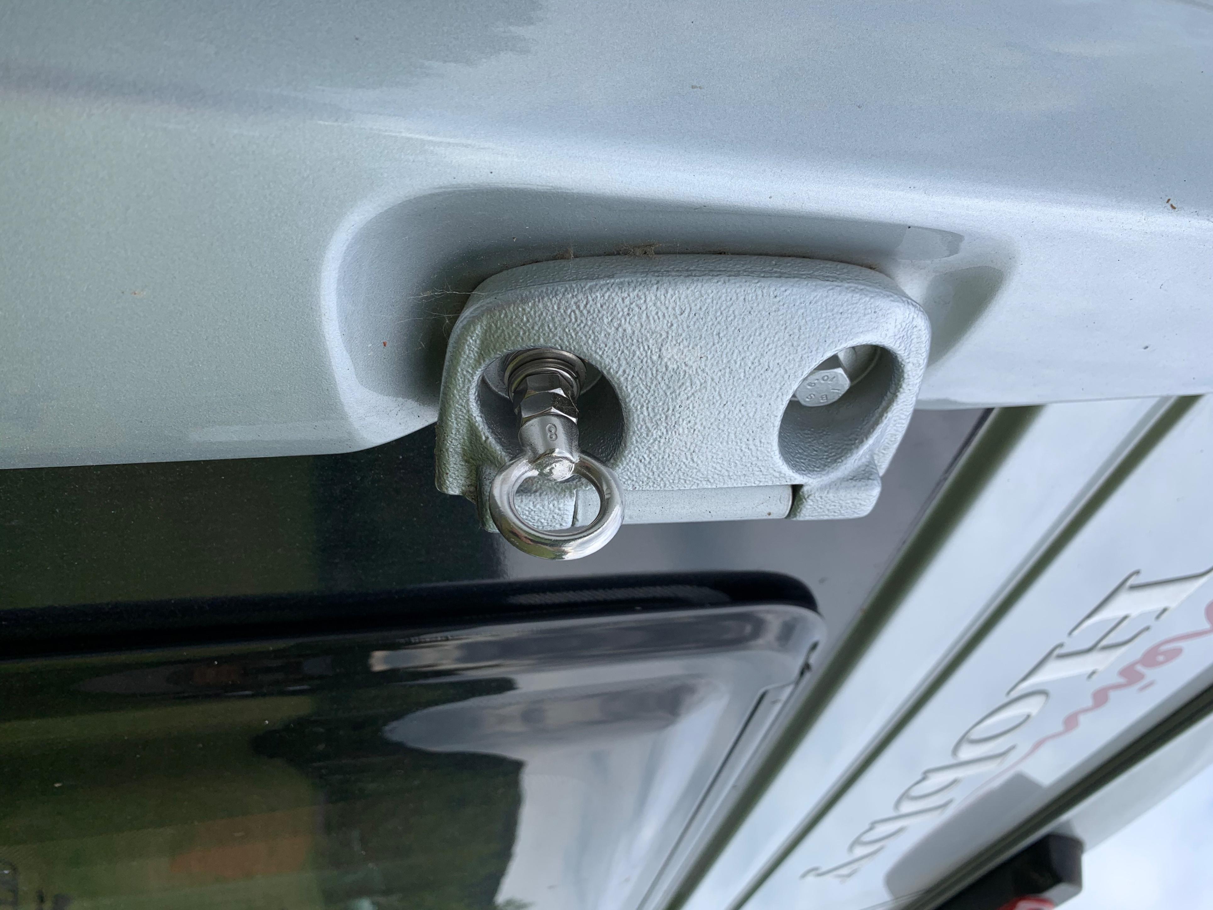 hab mal ein paar Fotos gemacht. Montiert hab ich den Atera DL3, Hecktüren gehen ( gerade so) auf. Habe oben bei den Türscharnieten zwei Ösen montiert. Damit sichere ich die montierten Räder, damit diese während der Fahrt nicht so sehr wackeln.