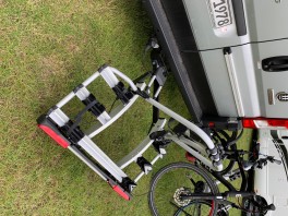 Bei diesem Träger kann man die Hecktüren öffnen, auch wenn die Fahrräder montiert sind! Der Träger hat drei Schienen, wobei die erste Schiene zum Fahrzeug hin frei bleiben muss.