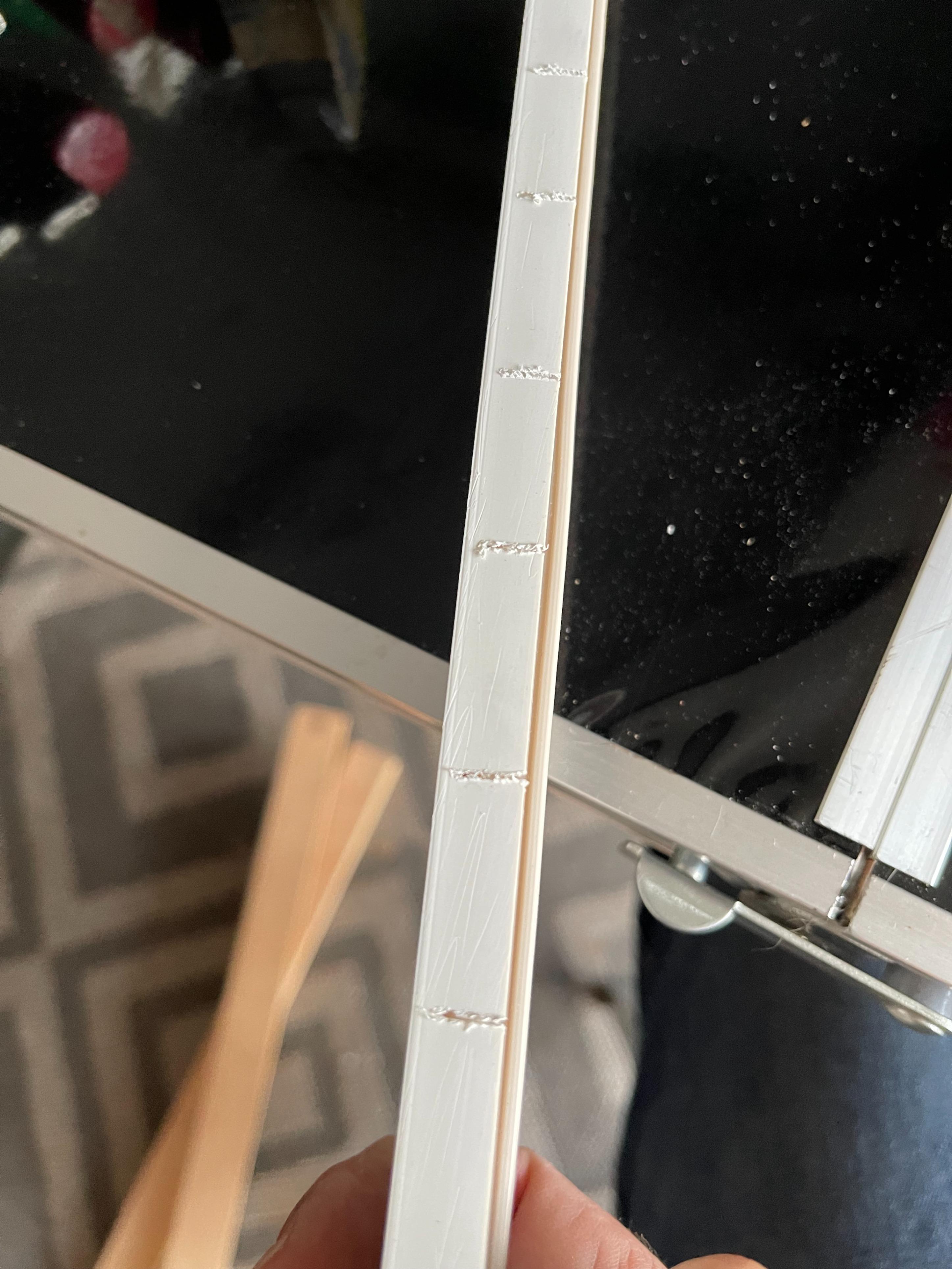 So habe mal auf Verdacht die Gummi-Abdeckung im Foto bei eBay bestellt , 12 mm breit , es funktioniert ( siehe Bilder )gefällt mir optisch besser und ist hoffentlich nicht so anfällig gegen Ausbleichen wie das weis .