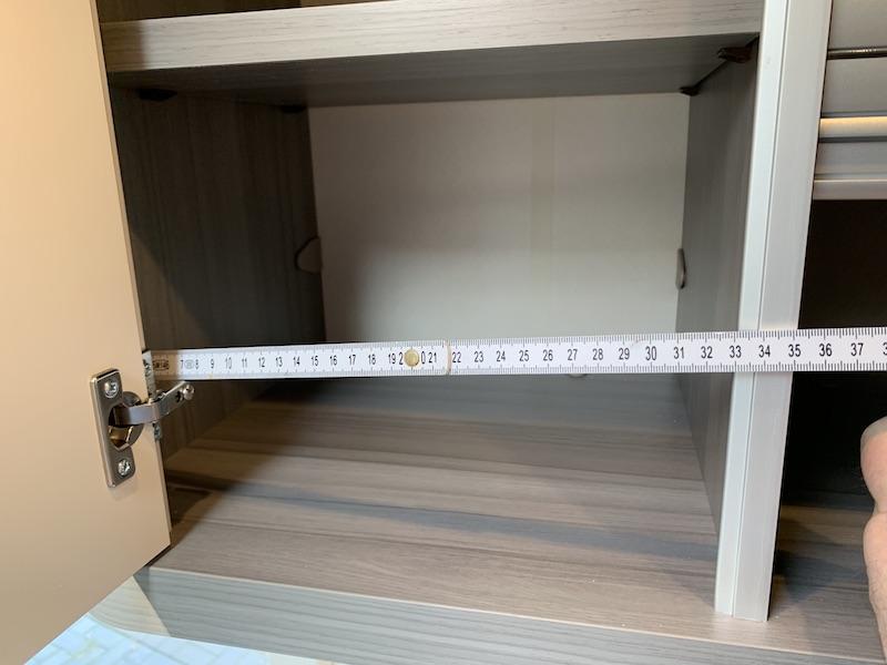 Die Waschraumtür kommt gegen den Griff des Kühlschranks, so dass sie nur 90 Grad zu öffnen ist. Die Schaniere kann man auch nicht in dieser Richtung einstellen. Ist das bei euch auch so???