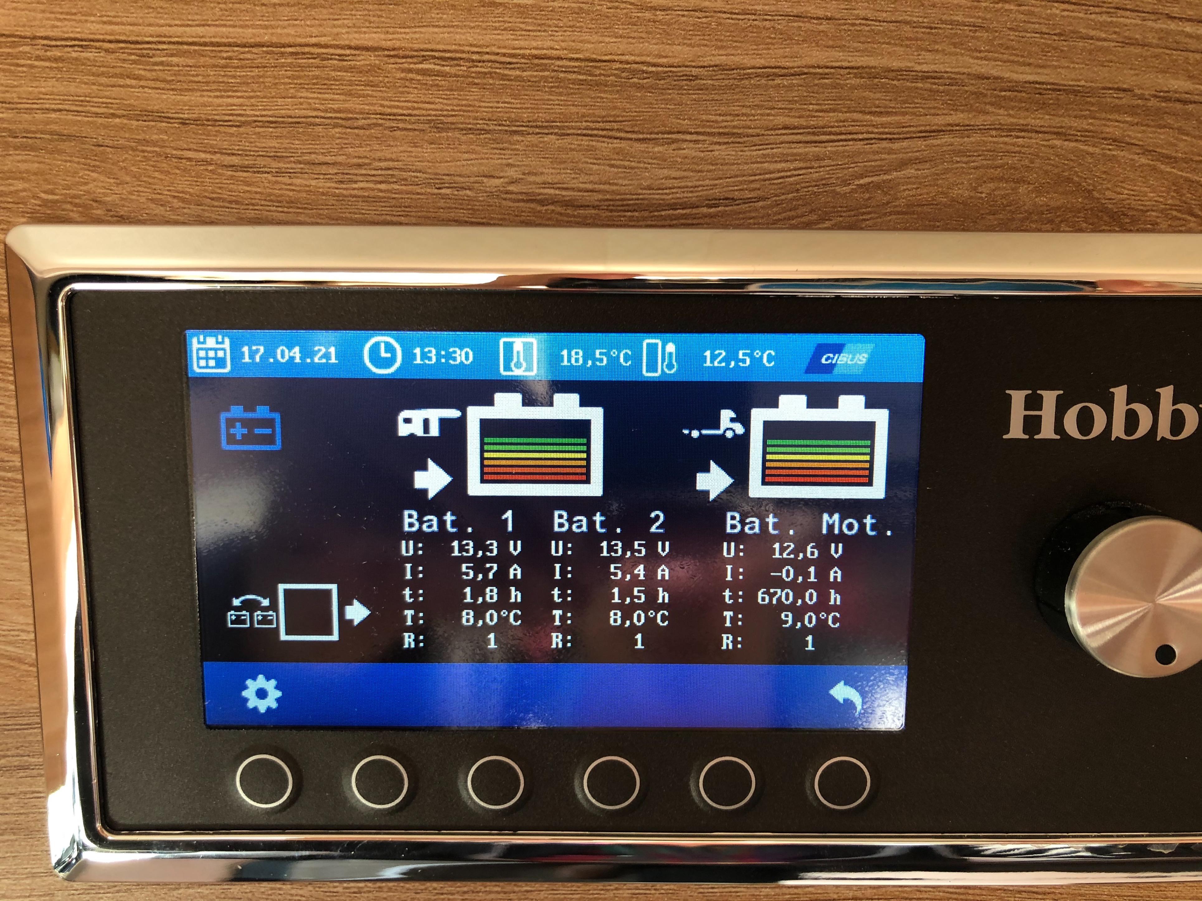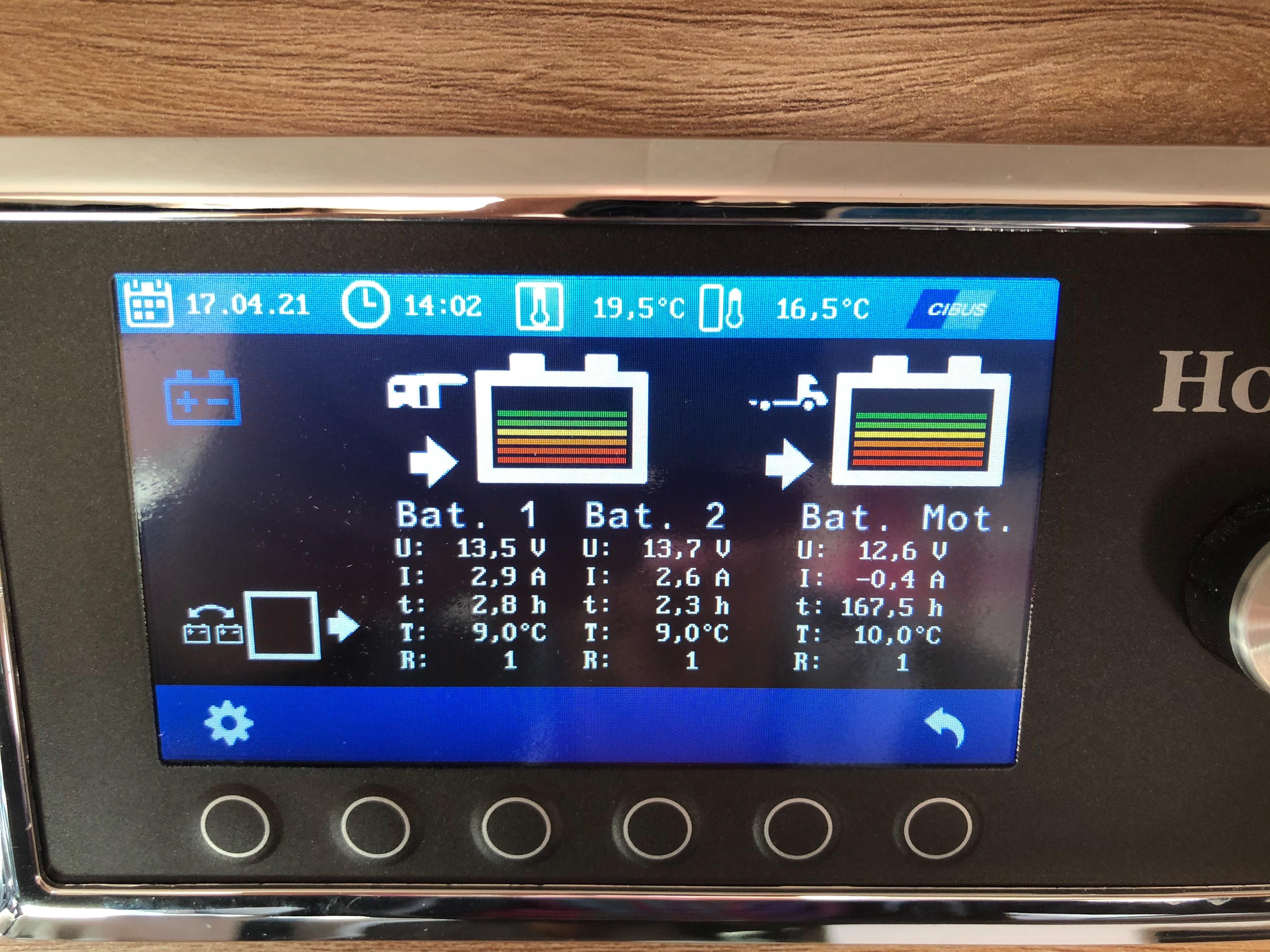 die zwei Aufbaubatterien laden sich nur bis 80 % lt Multifunktionsdisplay