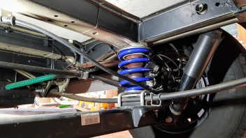 Hallo Joachim, das Fahrzeug habe ich mit dem Original Wagenheber angehoben. Ging besser als gedacht danach das Fahrzeug unbedingt mit Stellböcken, Vorlegekeile und Holzbohlen absichern. Wenn du den langen Gummidämpfer hast, ist ein Einfädeln der Spiralfeder nicht möglich, auch wenn sie vorgespannt ist. Dèr Einbau ist dann nur möglich ,wenn die Blattfeder hinten ausgehängt wird und das Fz noch höher angehoben wird. Achte auf die Bremsleitung.