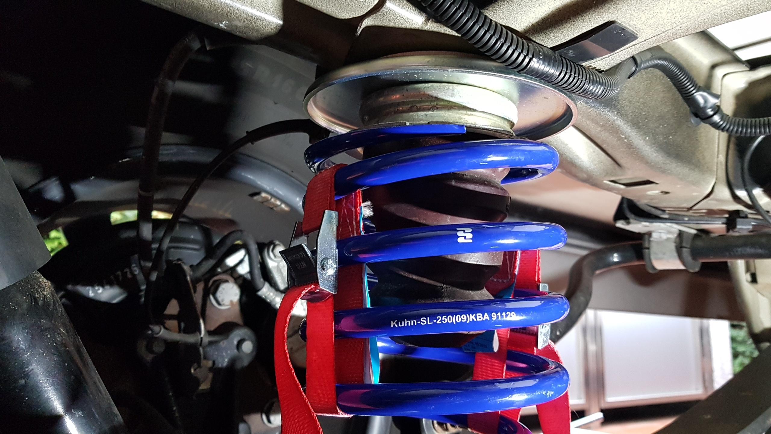 Hallo Joachim, dein Plan ist gut und richtig, birgt aber ein paar lösbare Probleme. Der Stossdämpfer muss auf jeden Fall gelöst werden. Idealerweise sollte der Einbau der Feder, wie in diversen YT Beiträgen dargestellt, auf einer Grube oder Hebebühne durchgeführt werden. Für die Federspanner ist kein Platz,deswegen habe ich die Feder mit den Spannern vorgespannt und mit Spanngurten fixiert. Beim Einbau ist somit absolute Unfallgefahr. Normalerweise müsste die Blattfeder hinten ausgehängt werden um mehr Freiraum für den Einbau der neuen Spiralfeder und des Puffers zu schaffen, es geht aber auch so. Immer schön auf die Finger achten!!!!!!!!. Das Fahrzeug sicher abstützen.