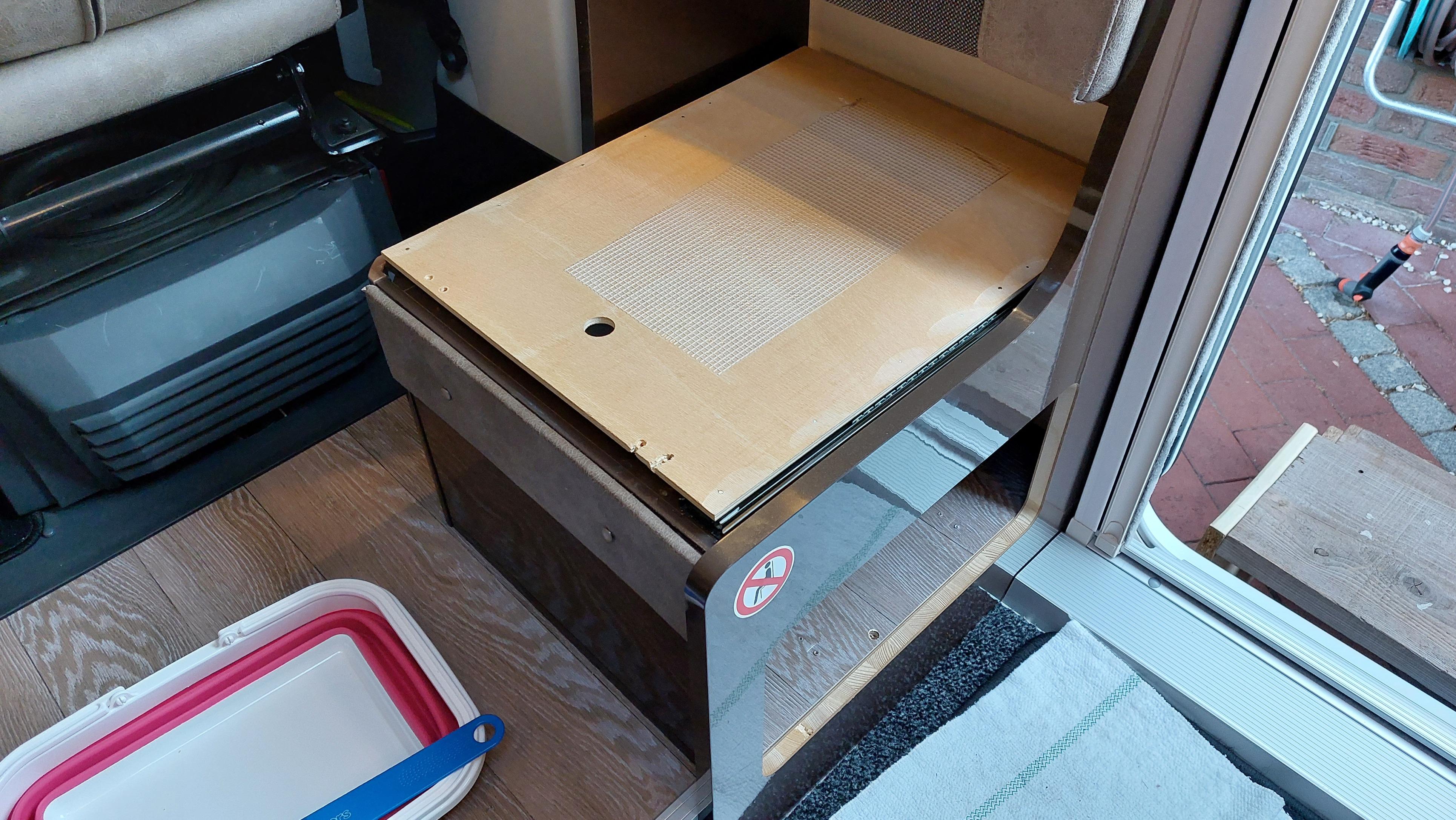 Hallo Lothar, wir sind gerade aus dem Urlaub zurück und ich habe soeben die Idee zum Umbau des seitlichen Sitzes umgesetzt. Der zuvor schlecht nutzbare Stauraum kann nun optimal ausgenutzt werden. Die ehemalige Schubladentür werde ich noch zur Klappe umbauen. Vielen Dank für die Inspiration. Viele Grüße aus dem sonnigen Norden von Ralf.